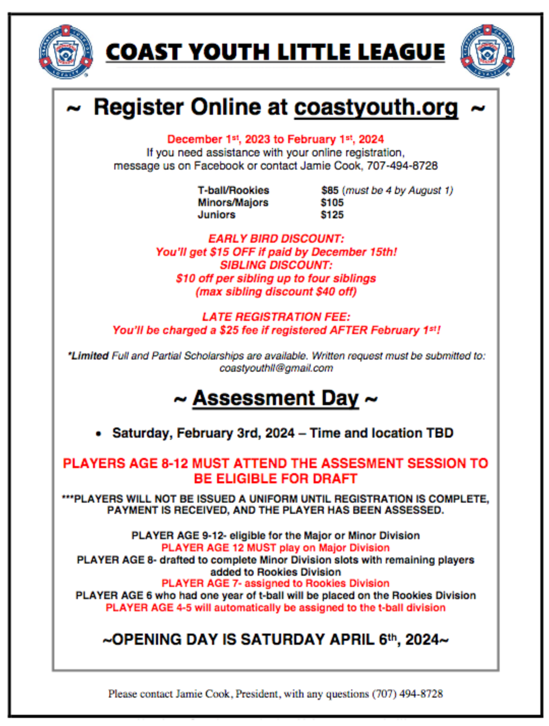 Coast Little League December 2, 2023 blake88 Coast Youth Little League registration is now open until Feb 1, 2024