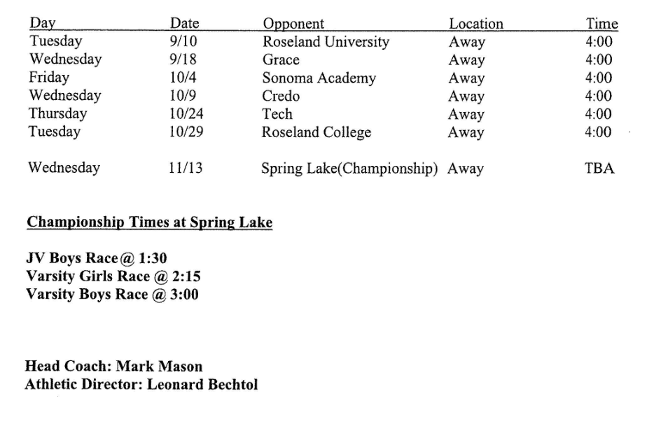 2024 Cross Country Schedule