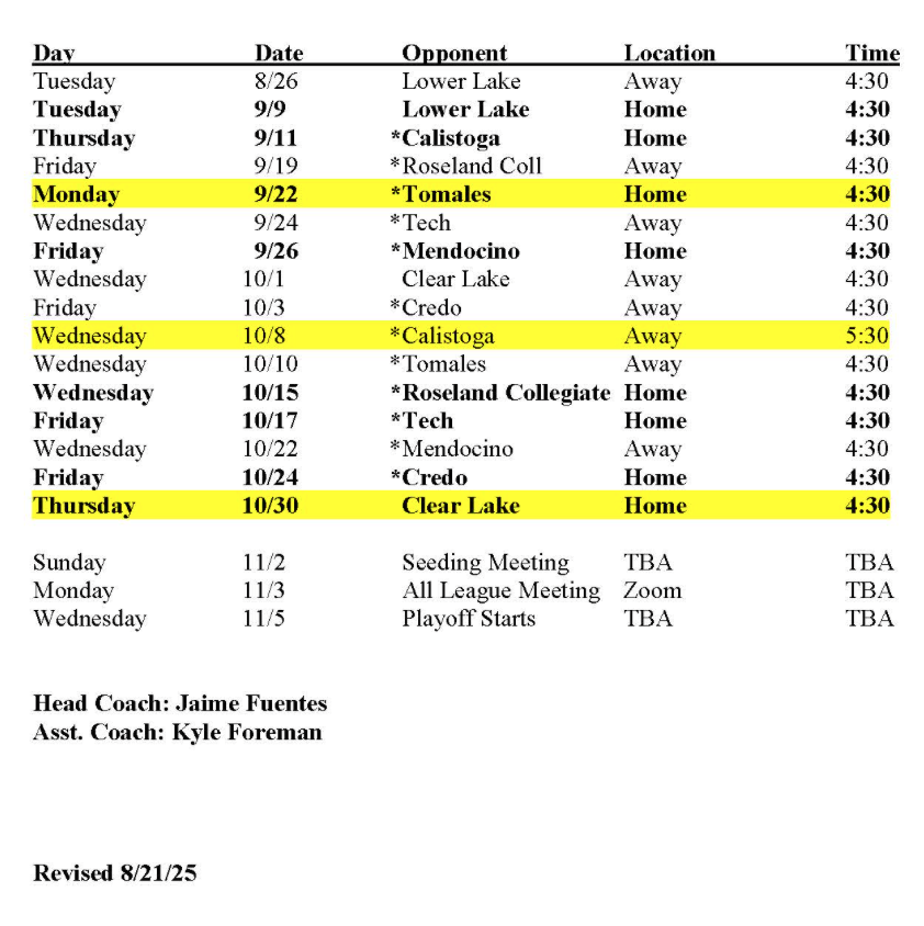 Girl's Soccer Schedule