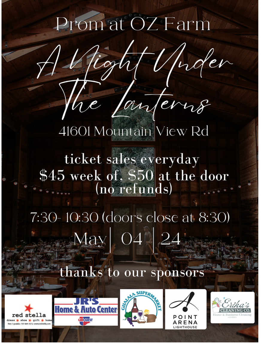 Please Note: Middle school students are not allowed. No refunds on ticket purchases. Doors open at 7:30, and close at 8:30. Students and their rides use designated parking area. Students will be shuttled down the big hill from the parking area to the event venue. Guest passes are due today, Friday 4/26.