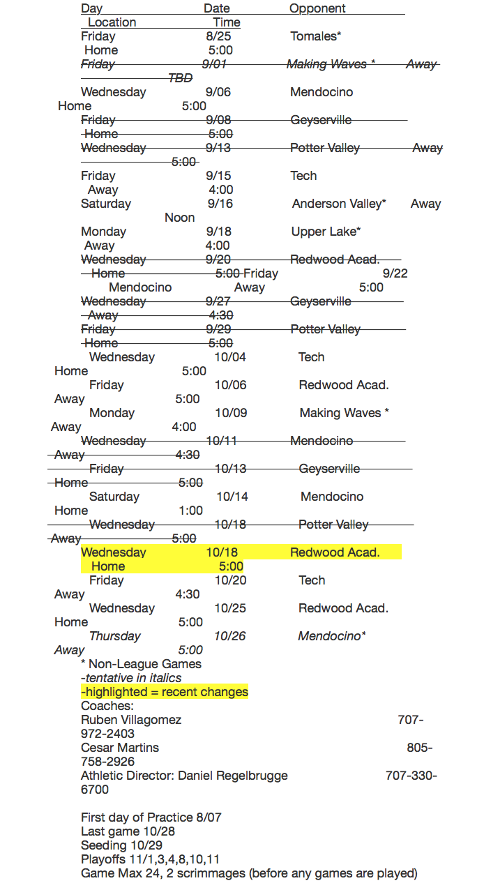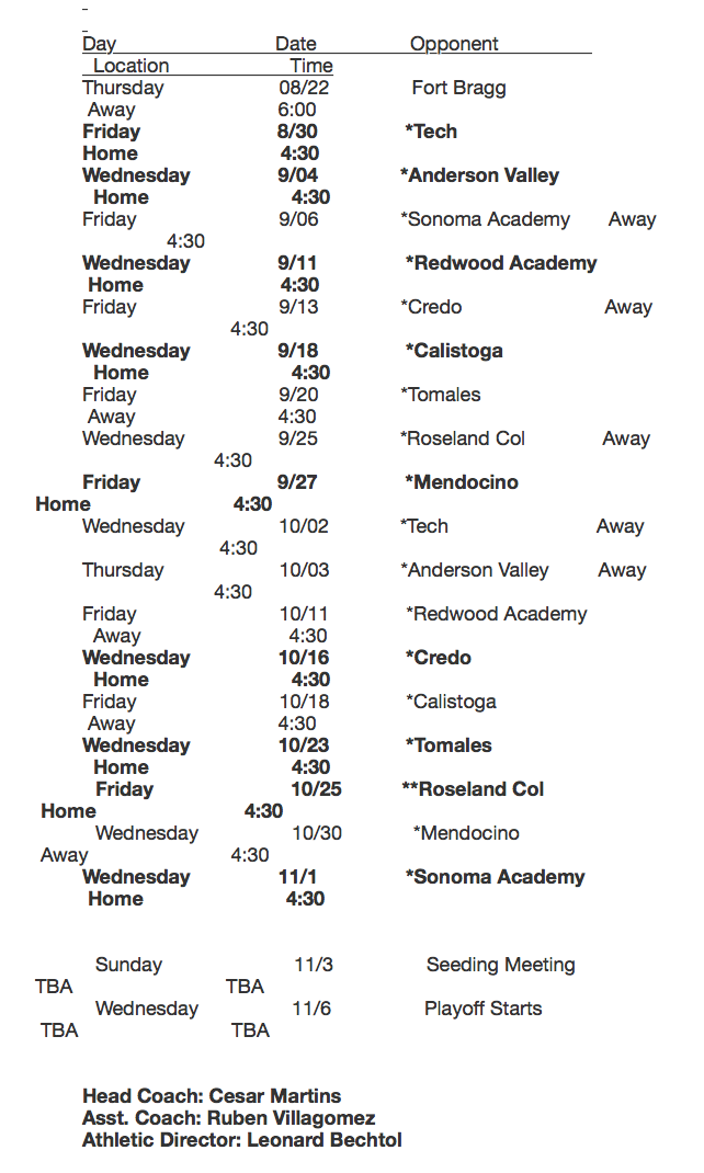 Soccer Schedule