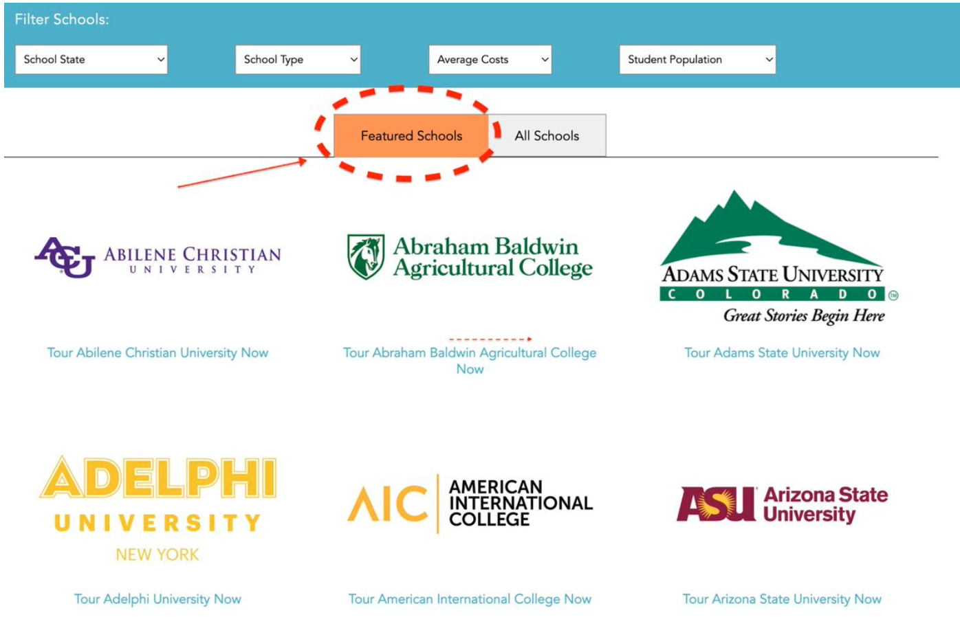 Check out the ‘Featured Schools’ Tab
