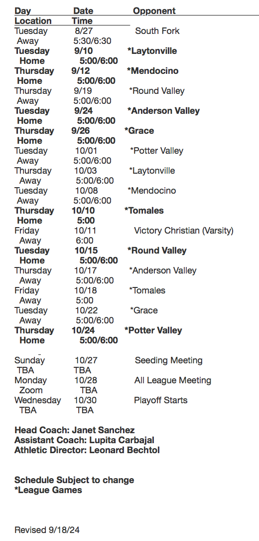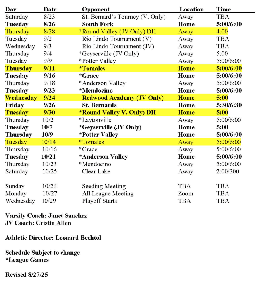 Volleyball Schedule